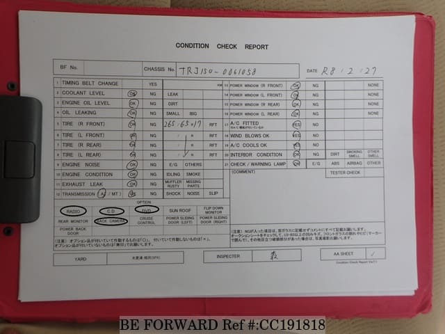 | Model Code | CBA-TRJ150W | Steering | Right |