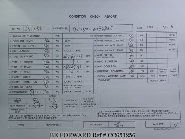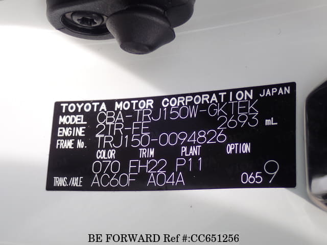 | Chassis No. | TRJ150-0094826 | Engine Code | 2TR |