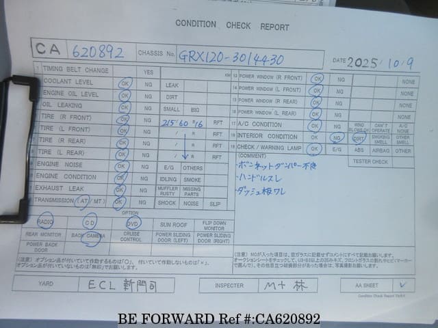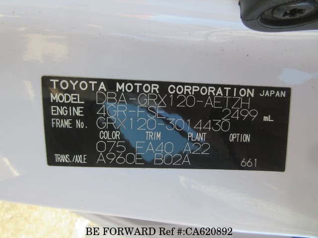 | Chassis No. | GRX120-3014430 | Engine Code | 4GR |