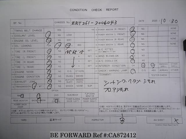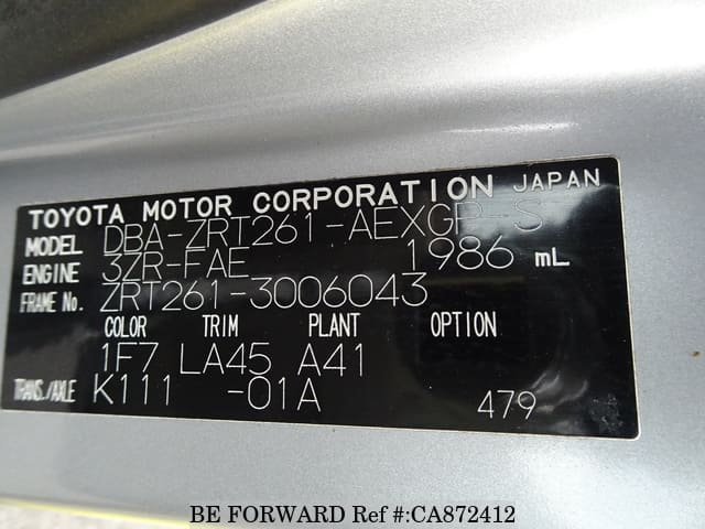 | Chassis No. | ZRT261-3006043 | Engine Code | 3ZR |
