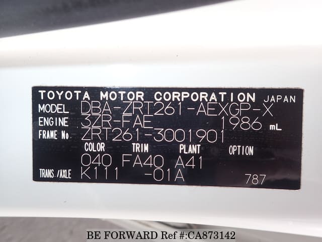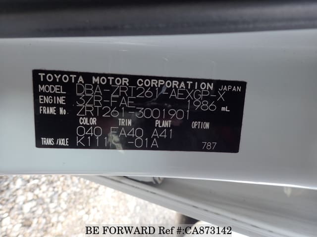| Chassis No. | ZRT261-3001901 | Engine Code | 3ZR |