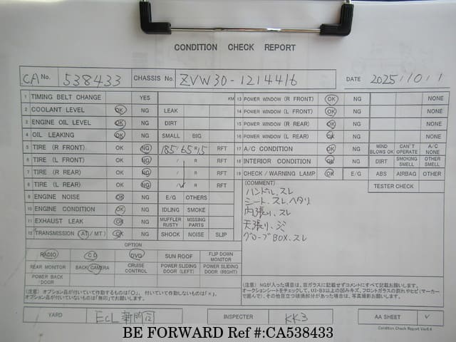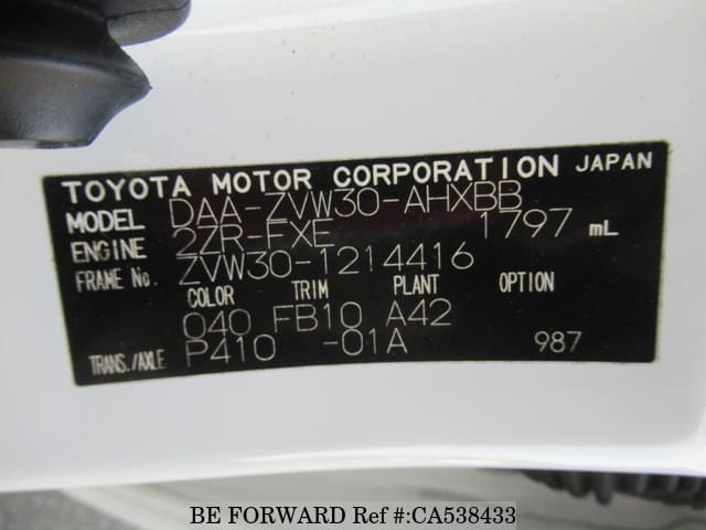 | Chassis No. | ZVW30-1214416 | Engine Code | 2ZR-3JM |