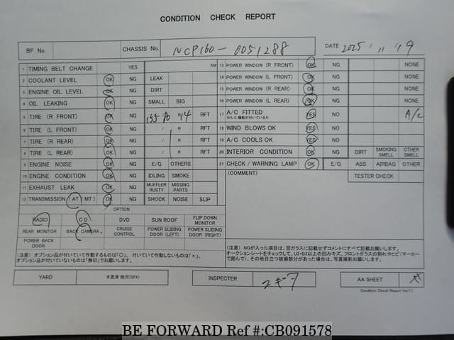 | Chassis No. | NCP160-0051288 | Engine Code | 1NZ |