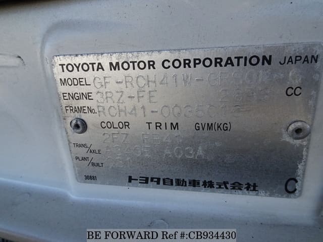 | Chassis No. | RCH41-0035016 | Engine Code | 3RZ |