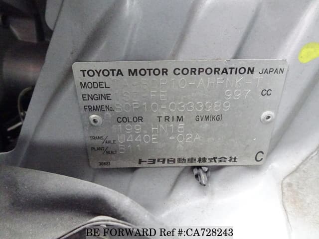 | Chassis No. | SCP10-0333989 | Engine Code | 1SZ |