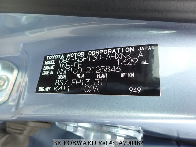 | Chassis No. | NSP130-2125846 | Engine Code | 1NR |