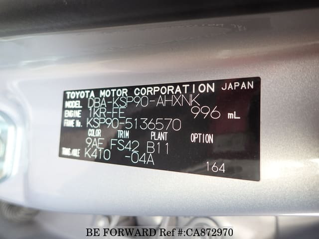 | Chassis No. | KSP90-5136570 | Engine Code | 1KR |