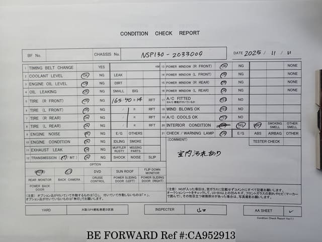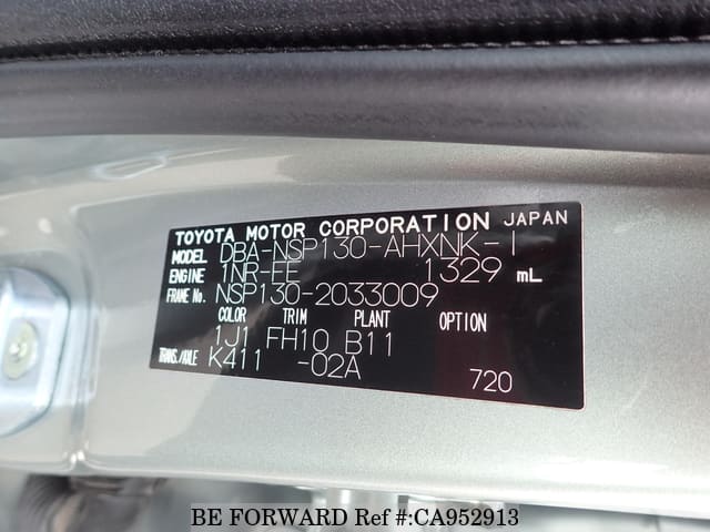 | Chassis No. | NSP130-2033009 | Engine Code | 1NR |